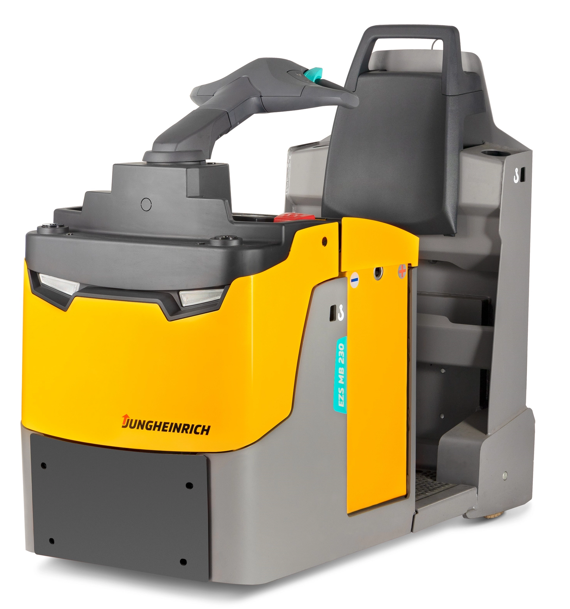 The EZS MB 230 is the ideal solution for towing applications over uneven ground, both indoors and outdoors. With a towing capacity of 3,000 kg, ground clearance of up to 100 mm, and an overall width of 700 mm, the EZS MB 230 offers an attractive combination of performance and versatility in a compact package. In addition to the high ground clearance, the EZS MB 230 comes with electronic power steering, a dampened drive unit and cushioned floor mat as standard, ensuring an effortless and comfortable drive regardless of floor conditions. Speed reduction when cornering is also standard, for safe operation when manoeuvring. Optional rubber front bumper, a range of lighting equipment and a buzzer are available to increase operator and pedestrian safety and awareness. Amenities such as numerous storage compartments, optional USB charging ports, and document holder ensure the operator remains productive throughout the shift. The alternatives of vertical and lateral battery exchange minimize downtime between shifts.